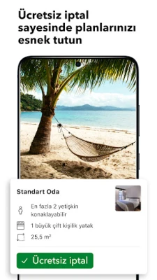 Booking.com deneyiminizde rezervasyonunuzu saniyeler içinde tamamlayın. Mevcut bir Booking.com hesabınız varsa, bilgileriniz otomatik olarak doldurularak size zaman kazandırılır. Kağıt karmaşasına tamamen veda edin; uygulamanız üzerinden anında onaylar ve çevrimdışı haritalar erişiminize sunulur, böylece baskıya veya internet bağlantısına ihtiyaç duymazsınız. Seyahat planlarınızdaki olası değişikliklere karşı esneklik sağlayan Booking.com, rezervasyonlarınızı uygulama içinden kolayca düzenlemenize olanak tanır. Ayrıca, çok dilli ve 7/24 hizmet veren müşteri destek ekibimize telefon veya e-posta yoluyla ulaşarak her an yardım alabilirsiniz.